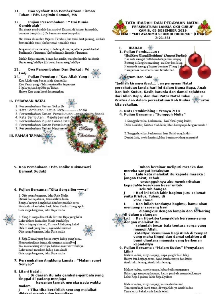 Kata kata pembukaan mc ibadah natal doc susunan acara.